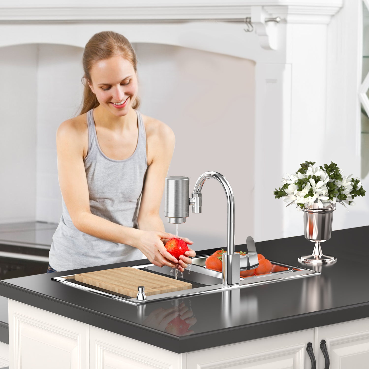 - 【Easy Installation】No drilling and plumber required, directly connect to the sink faucets (6 adapters included for different sizes of faucet). Besides, it produces ZERO waste water and does not require electricity to work. By twisting the switch, you can quickly get tap water and pure water.