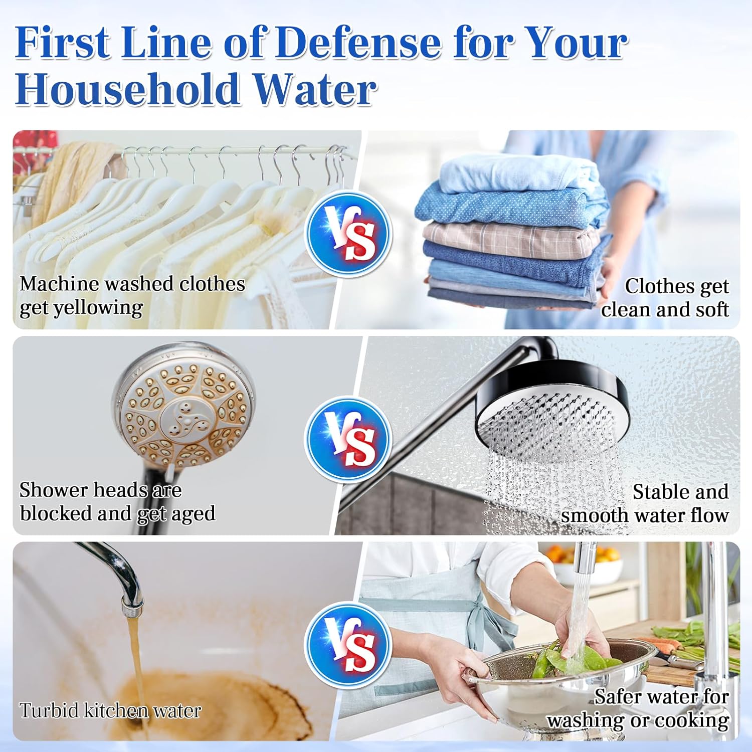 【Enhance Water Quality】OEMIRY whole house water filter effectively removes impurities, sediment, rust, and particles from your incoming water supply. Say goodbye to unpleasant odors, chlorine, and safeguard your family from potentially harmful contaminants. 【Protect Appliances】Prolongs the life of washing machines, water heaters, and other household water facilities by preventing sediment and contaminants from causing damage. 【Premium Material】Made with thickened 304 stainless steel, the whole house water filter ensures durability and safety. Under professional test, no leakage at -22℉ with a burst pressure of 406psi, providing reliable protection and stable flow rate for your household water supply. 【Easy Installation】Designed to fit 1” inlet/outlet and 3/4" inlet/outlet(1"MNPT 3/4"FNPT Screw Thread * 2 included), this system is easy to install in your home. Also the 10" x 4.5" universal filter cartridges have a lifespan of 6 months, you can enjoy continuous and hassle-free water filtration without frequent replacements. 【Versatile Application】Suitable for residential use, this whole house filter is designed to cater to the needs of modern households. Whether you're in the kitchen, bathroom, or laundry room, this system delivers clean and safe water throughout your home.